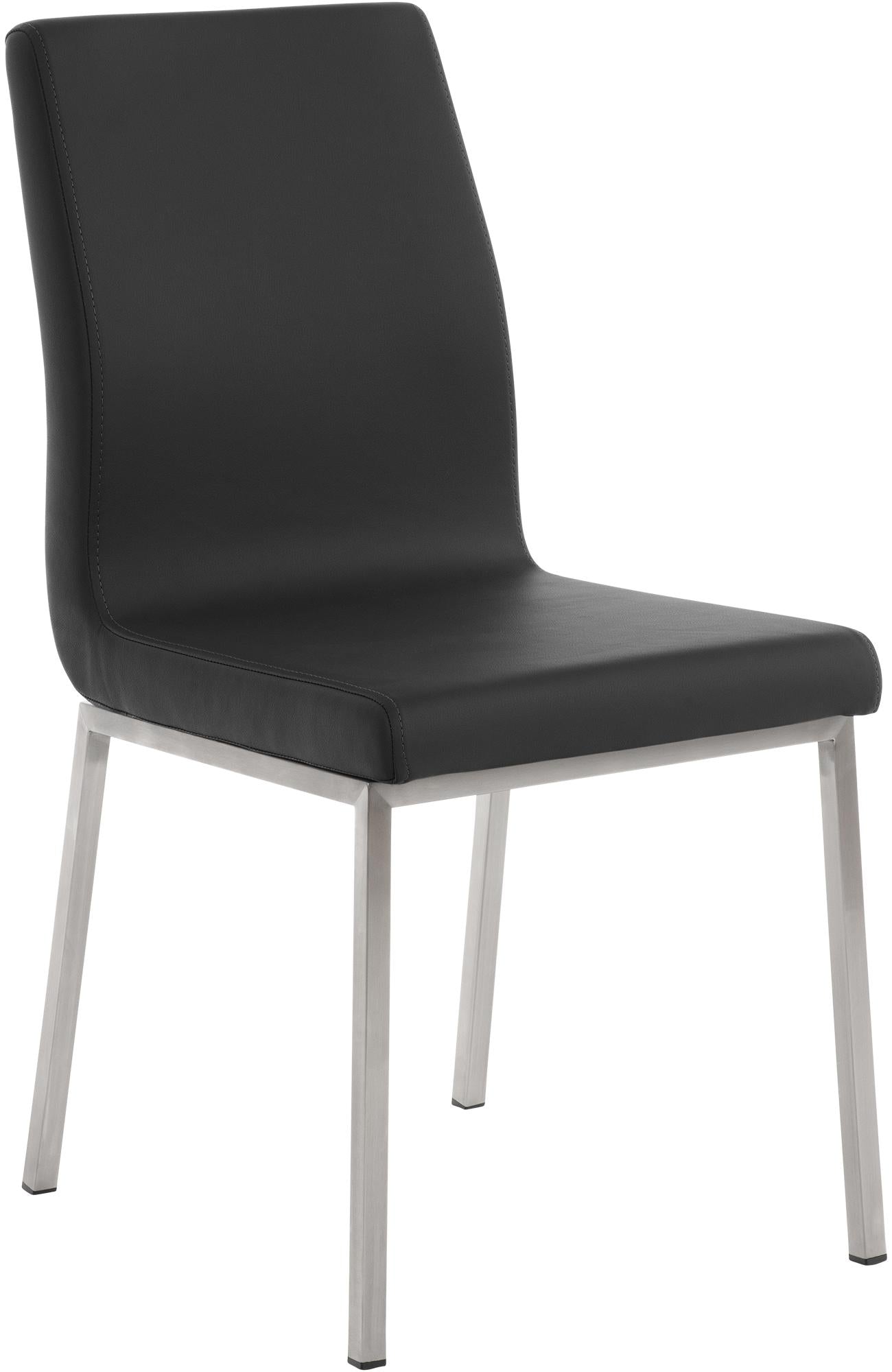 Der Esszimmerstuhl hat ein standfestes Vierfußgestell aus matt-gebürstetem Edelstahl. So kann der Stuhl Colmar bedenkenlos bis 120 Kilogramm belastet werden. Bodenschoner beugen dabei Beschädigungen empfindlicher Böden vor.