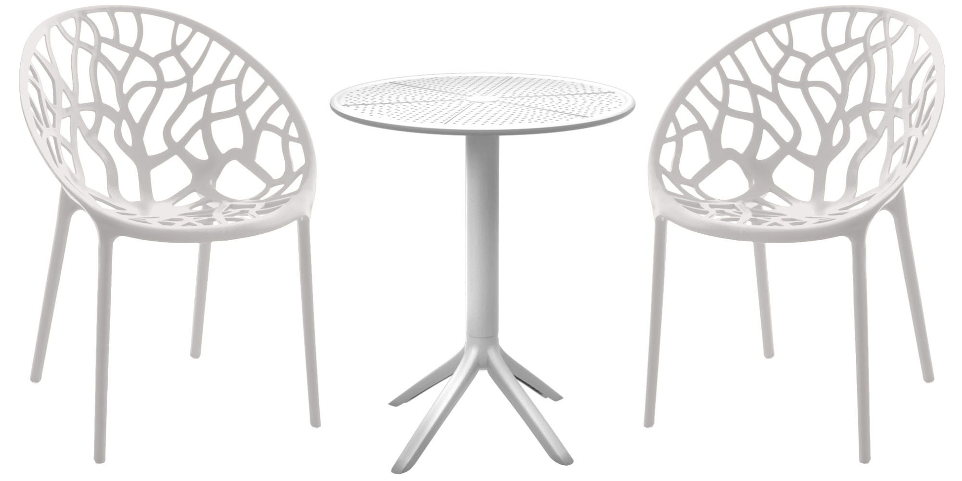 Diese Sitzgruppe Hoscana ist eine stilvolle Kombination aus dem runden Esstisch Lacota und zwei stapelbaren Gartenstühlen Hope. Die Farben und das Design sind harmonisch aufeinander abgestimmt. Dank ihrer Materialeigenschaften eignet sich die Sitzgruppe perfekt für die Nutzung im Außenbereich, beispielsweise für Garten, Balkon, Terrasse sowie für die Outdoorlounge. Auch im Innenbereich etwa als Küchen- oder Bistrotischgruppe überzeugt sie durch ihre Vielseitigkeit.